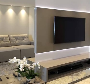 Nossos projetos de salas são pensados para oferecer conforto e sofisticação, com móveis que refletem seu estilo e atendem às suas necessidades de espaço e funcionalidade.